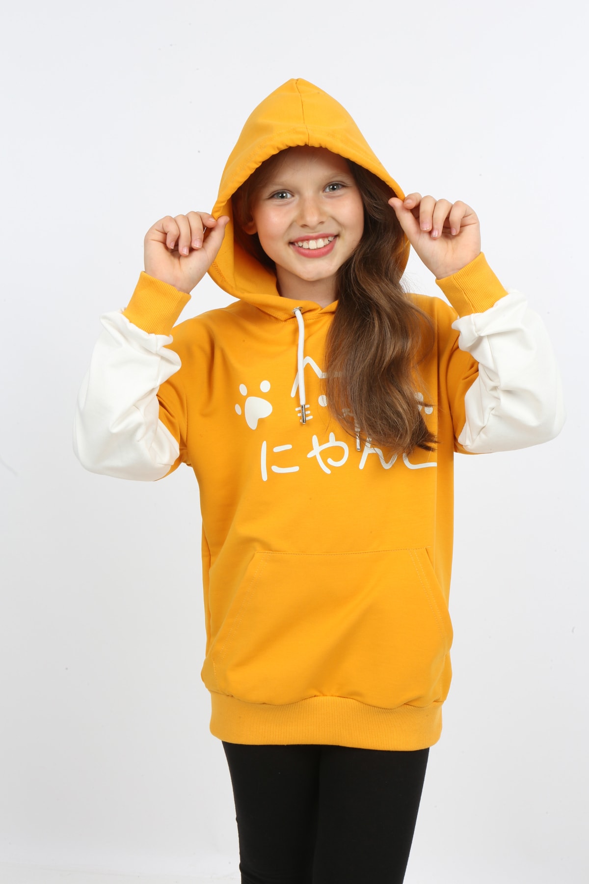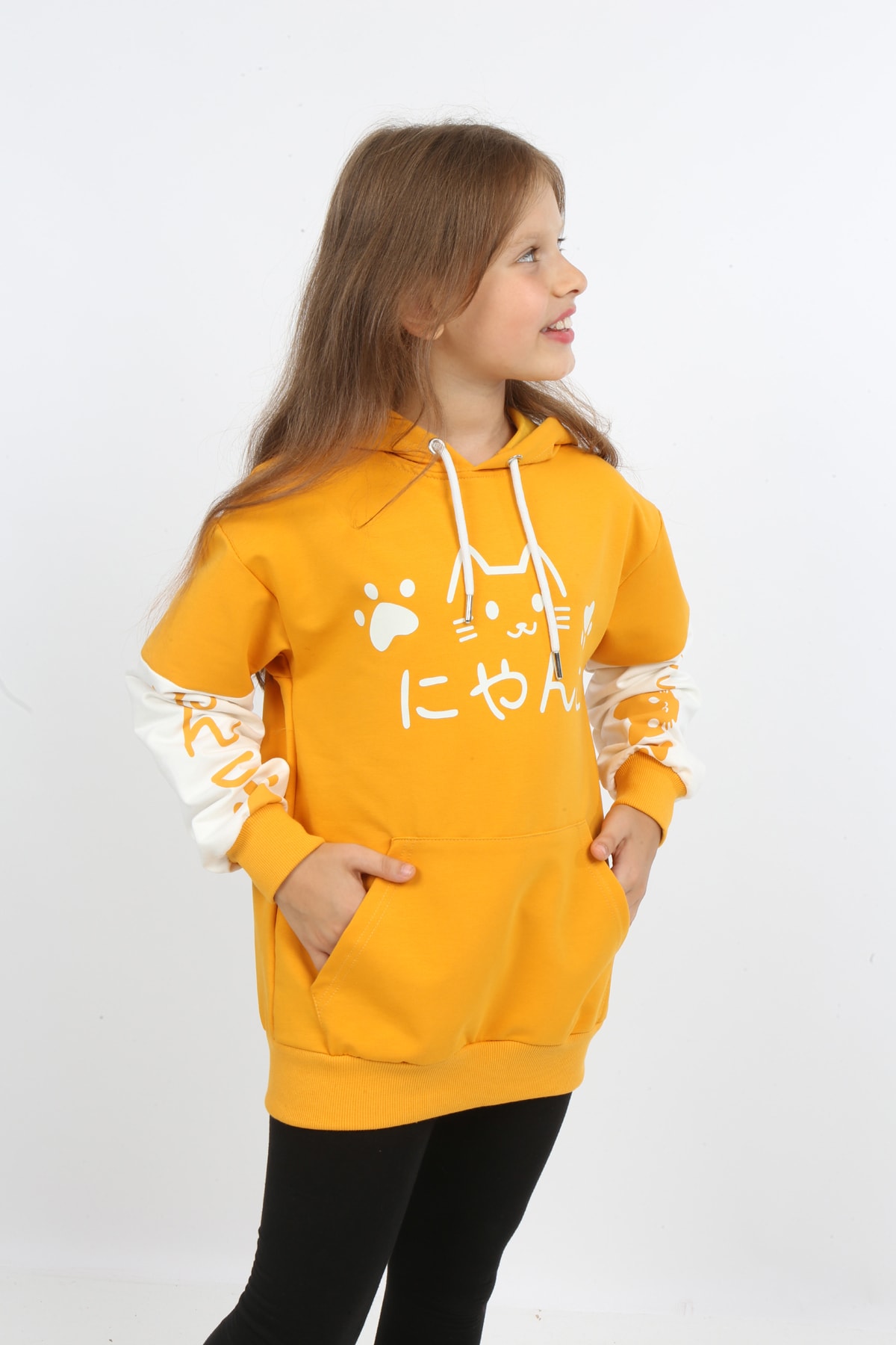 Kız Çocuk Baskılı Kapüşonlu Cepli Sweatshirt