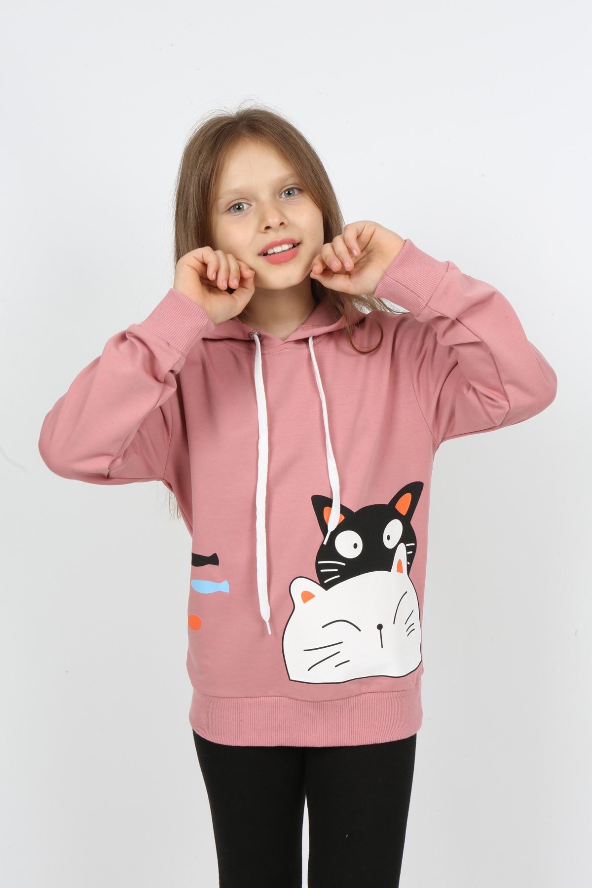 Kız Çocuk Kapüşonlu Baskılı Sweatshirt