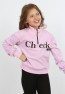 Kız Çocuk Ön Den Yarım Fermuarlı Baskılı Sweatshirt