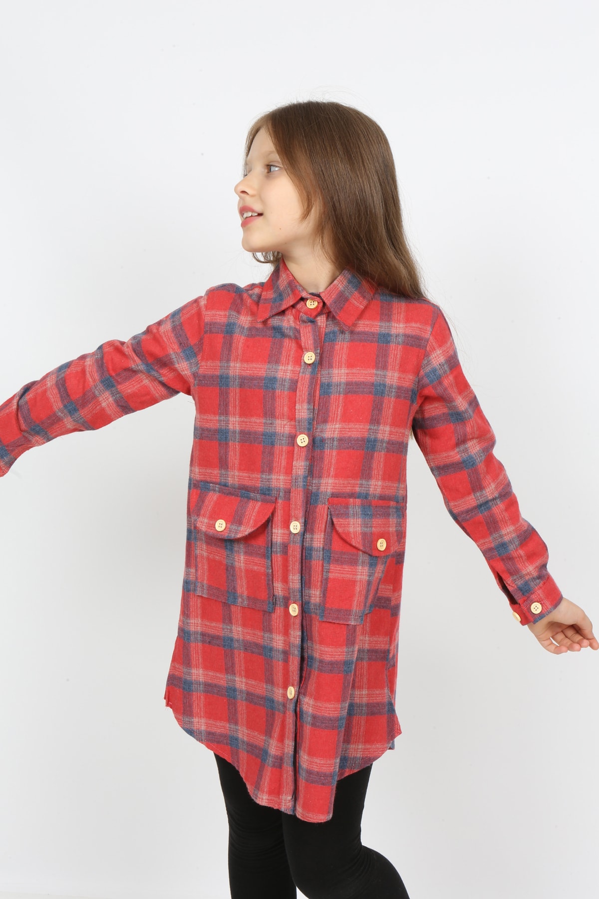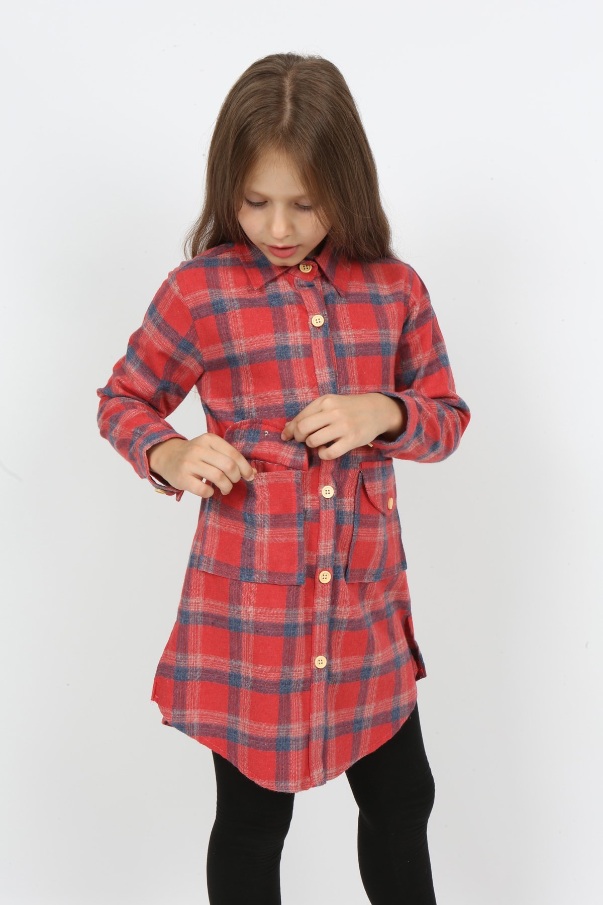 Рубашка лесоруба для девочек с двойными карманами