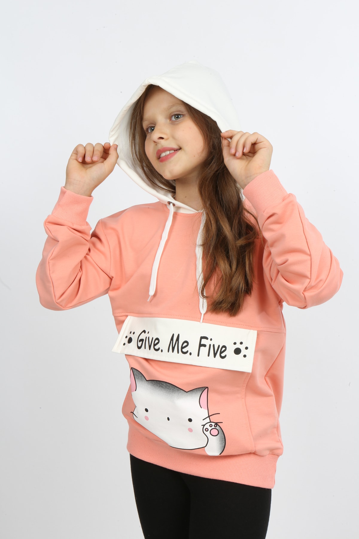 I&k Şımarık Kids سويت شيرت مطبوع بجيب مقنع للفتيات