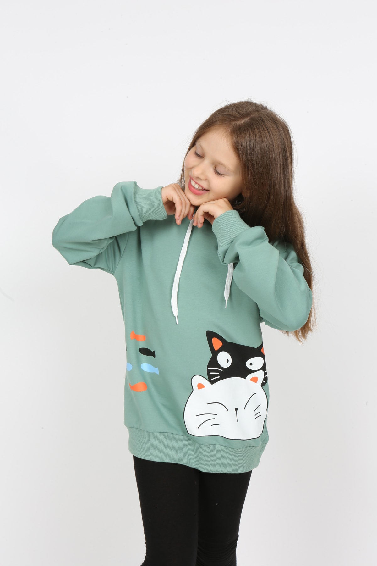 سويت شيرت بغطاء رأس مطبوع للفتيات من I&k Şımarık Kids